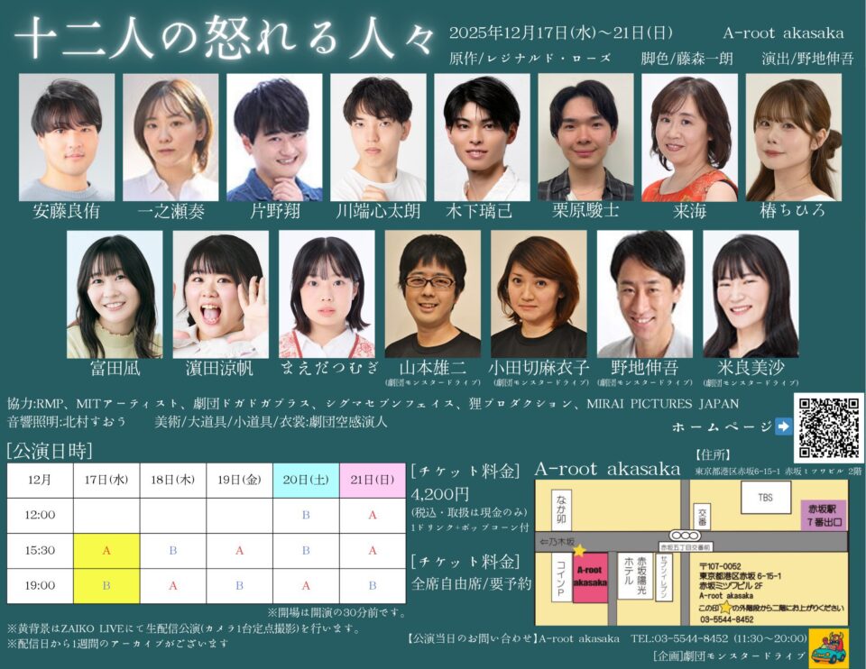 弊社所属、片野翔が「十二人の怒れる人々」の舞台に出演します!